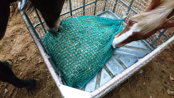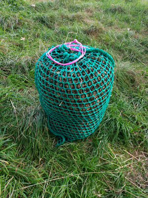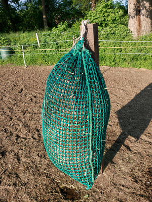 Ein Beutel kann mit ca. 8 - 15 kg Heu befüllt
