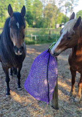 Ein Beutel kann mit ca. 3 - 6 kg Heu befüllt